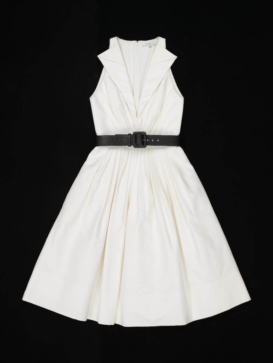 This double-breasted suit comprises a single-back vent and wide collar that references that worn by Napoleon Bonaparte. It features jacquard paisley motifs and custom-made ‘AG’ buttons. The ensemble comes from Andrew Gn’s Spring 2011 collection which encapsulates the hippie style of 1960s British fashion designers Ossie Clark and Jean Muir. Andrew Gn is one of Singapore’s most prolific fashion designers in history, achieving high levels of critical acclaim and industry success. He is the only Singaporean to be a constant feature of Paris Fashion Week since 1995. His creations are known for their elegant, feminine, maximalist aesthetics and are finely crafted, cross-cultural, and reflective of innovation in tradition in fashion. This work is part of his major gift back to Singapore.