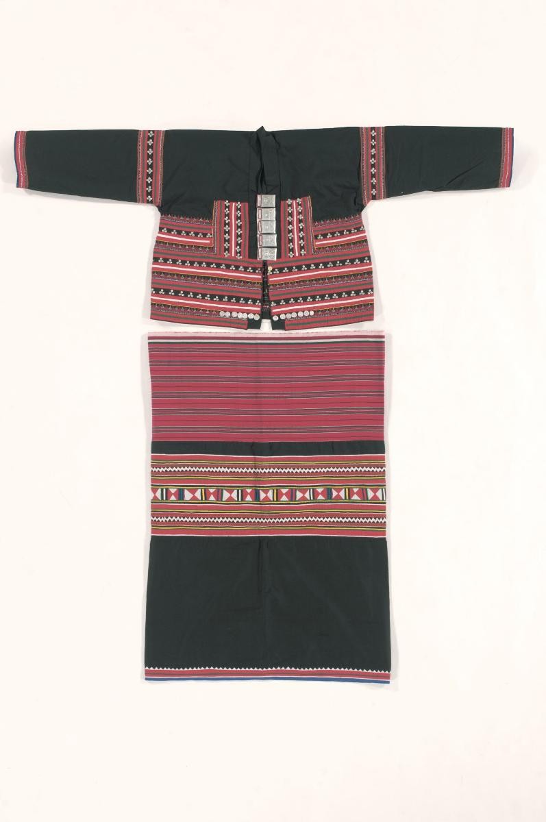 This scarlet jacket features velvet appliqué and bead embroidery forming motifs of thorny thistles. Paired with a black mermaid skirt, the ensemble reflects the designer, Andrew Gn’s mastery in surface embellishments and tailoring. It comes from his Autumn/Winter 2016 collection in which he referenced tailored military styles from Russian royalties and couture techniques from the Edwardian period. Andrew Gn is one of Singapore’s most prolific fashion designers in history, achieving high levels of critical acclaim and industry success. He is the only Singaporean to be a constant feature of Paris Fashion Week since 1995. His creations are known for their elegant, feminine, maximalist aesthetics and are finely crafted, cross-cultural, and reflective of innovation in tradition in fashion. This work is part of his major gift back to Singapore.