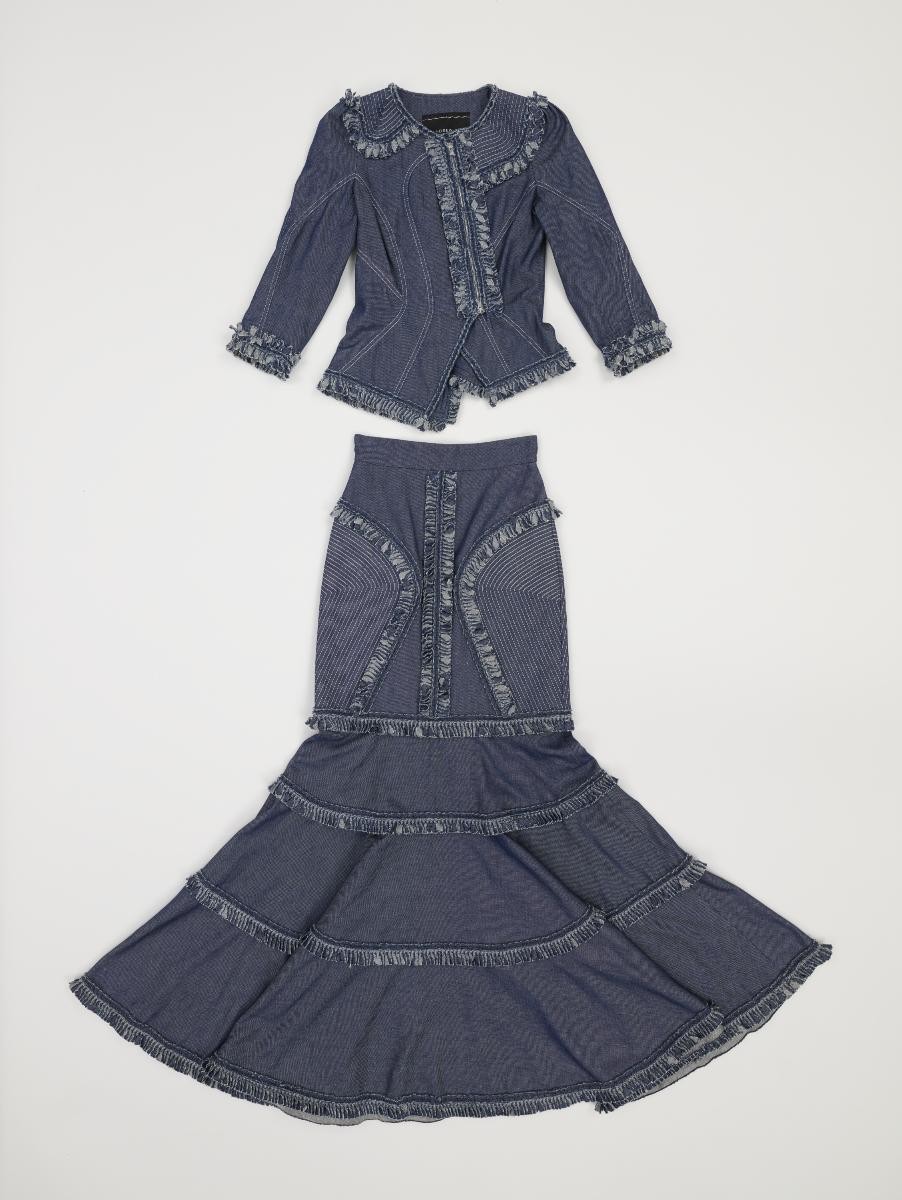 This skirt suit in mint colour features fil coupé floral motifs. On the blazer, the patterns are matched symmetrically at the peak lapel, sleeves and back, while the third button is precisely matched to hide at the waist seam. The skirt is gathered at the lower tier to create a mermaid silhouette and trimmed with floral embroidery to match the hem of the sleeves. This suit reflects Andrew Gn’s mastery in tailoring and textile development. Andrew Gn is one of Singapore’s most prolific fashion designers in history, achieving high levels of critical acclaim and industry success. He is the only Singaporean to be a constant feature of Paris Fashion Week since 1995. His creations are known for their elegant, feminine, maximalist aesthetics and are finely crafted, cross-cultural, and reflective of innovation in tradition in fashion. This work is part of his major gift back to Singapore.