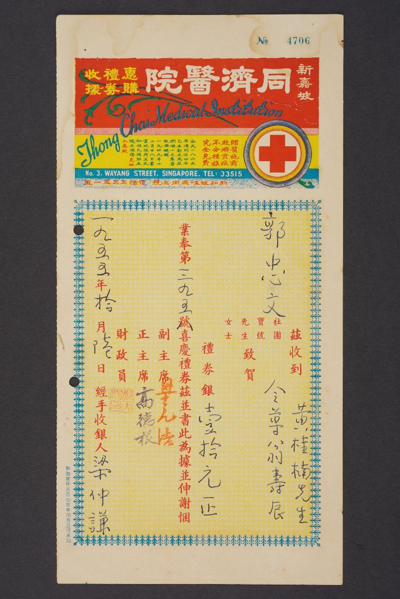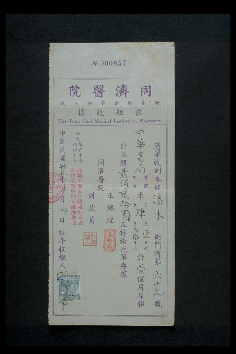This document is the official charter for Thong Chai Medical Institution, which was well known for providing free Chinese medical treatment to all patients regardless of race, religion, and nationality. The Charter itself is written in both English and Chinese, with the English translation attributed to He De Ru (何德如) (1870-1949), a member of the Tongmenghui (Chinese Revolutionary Alliance). He is also a former staff member of the Chong Shing Yit Pao, a newspaper set up by local merchants Tan Chor Lam and Teo Eng Hock with pro-Chinese revolutionary ideals.