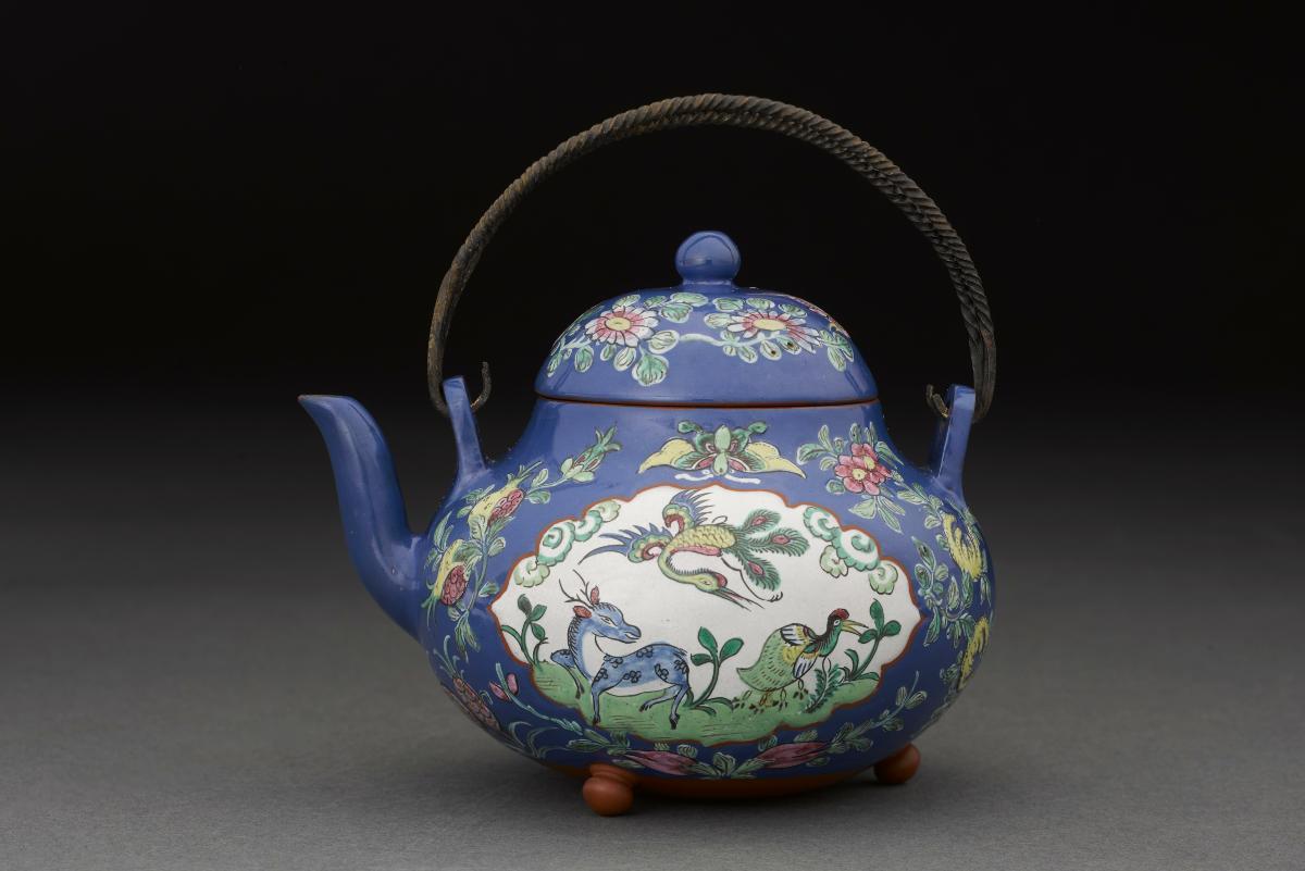Yixing clay teapots are traditional teapots made from a special clay at the Yixing kilns in the eastern Chinese province of Jiangsu, and are excellent for brewing oolong or black teas. The inscriptions indicate that the teapot was sold by Guan Chong Bee Enterprise, a Singapore tea trading company established in 1920.
