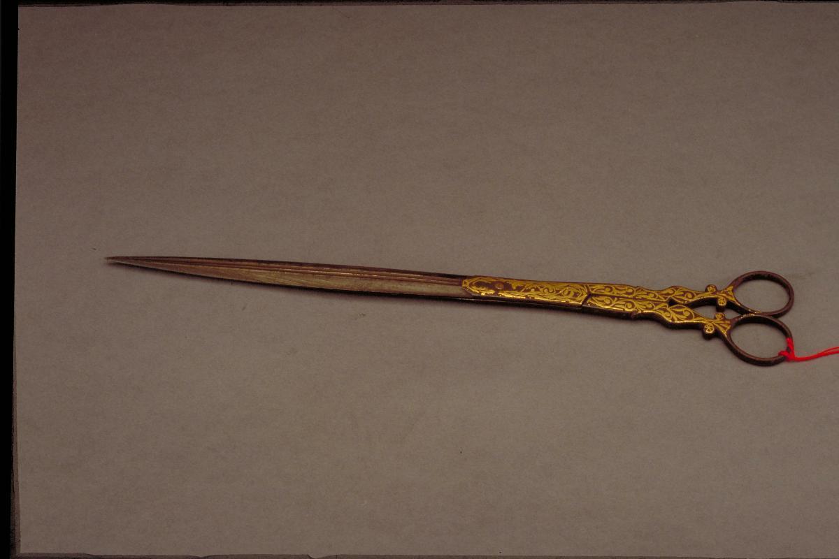 This is a pair of scissors with straight blades, used for cutting and trimming hair. They were part of a set of hairdressing tools that belonged to Aw Fong Lang, a female barber who was born in Shunde, Guangdong province, China in c.1919 or 1920. Aw came to Singapore at the age of 9 in the 1920s. She took up the skill of hair cutting in her teens. As an apprentice, she might have taken between 6 and 8 months to train as a barber, working 15 hours a day. Initially tasks were menial, before progressing to learn how to shampoo and wash heads and then learning the business of barbering. To gain practical experience, a male employee of the shop would allow the apprentice to ‘experiment’ on his hair. While Aw initially worked in a salon on Hai Lam street run by a Hainanese woman, she later set up her own barber shop at Jalan Besar, near the back entrance of New World (the shop was called Lai Ming/Meng 黎明; dawn in Cantonese). In her shop, Aw trained two of her brother’s daughters as apprentices. Aw retired from her business in the 1970s.