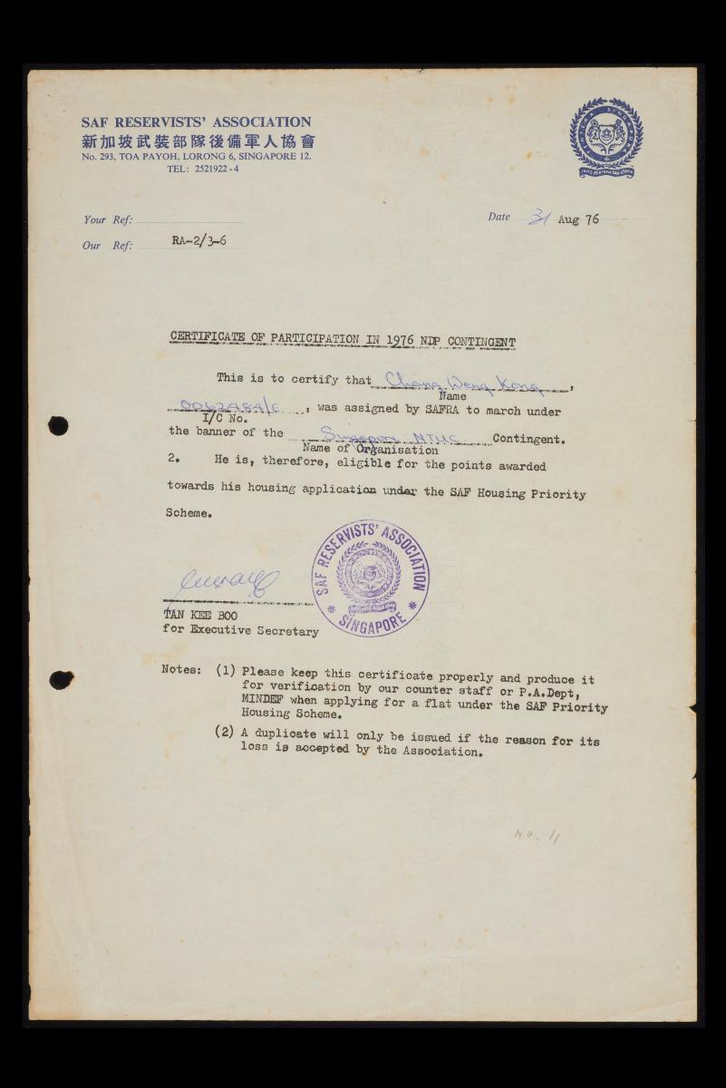 The Singapore Armed Forces Code of Conduct was promulgated by Dr Goh Keng Swee, then-Minister for Defence, on 14 July 1967. There are six rules of conduct in this booklet. For example, rule one states that "We always honour our Nation. We will do everything to uphold it and nothing to disgrace it." This copy of the code of conduct was issued to a National Serviceman during his full-time service.