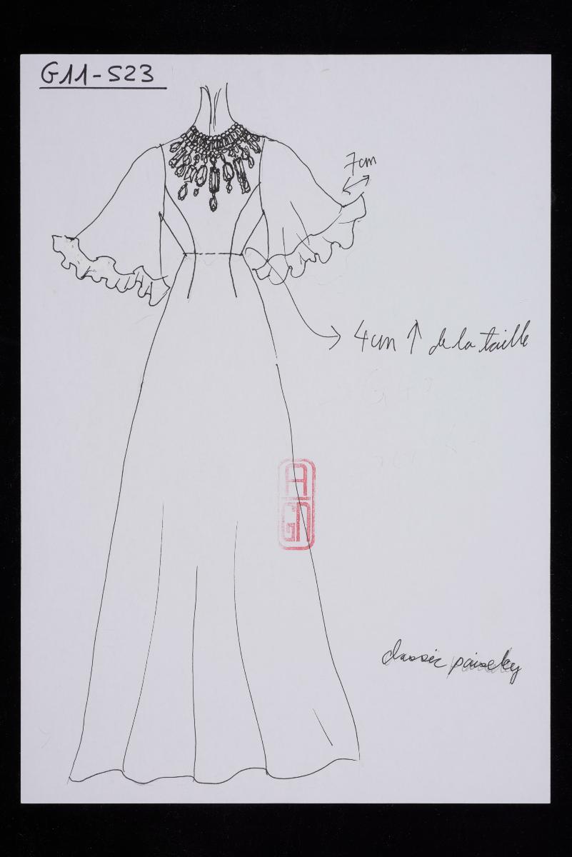 Coming from Andrew Gn’s Spring/Summer 2023 collection, the sketch of each silhouette is stamped with an ‘AGN’ red seal. At this stage, the sketches provide an overview of the types of garments offered in the collection, ranging from top, pants, jacket, dress, to gown. Specifications such as dimensions and construction are indicated before each silhouette is being attributed with a fabric swatch. This is part of a group of archives from the designer’s studio that shows how fashion pieces are developed from sketch, to styling, to showcase. Andrew Gn is one of Singapore’s most prolific fashion designers in history, achieving high levels of critical acclaim and industry success. He is the only Singaporean to be a constant feature of Paris Fashion Week since 1995. His creations are known for their elegant, feminine, maximalist aesthetics and are finely crafted, cross-cultural, and reflective of innovation in tradition in fashion. This work is part of his major gift back to Singapore.