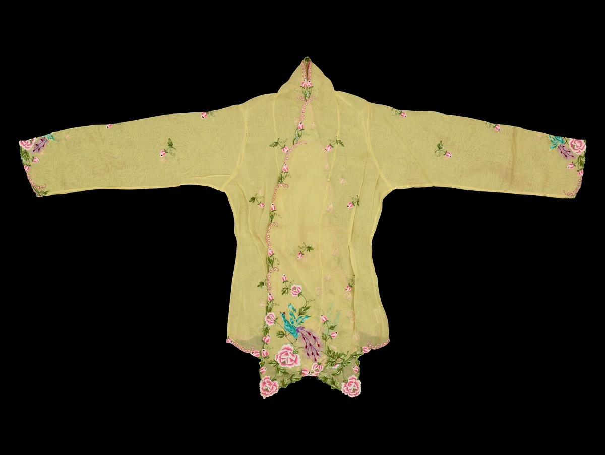 Alice Choo (1926-2019)’s sewing box contains 6 spools of thread, 10 needle cases, 2 packets of small needles and 3 large needles. She also used containers and small bowls to hold beads when she was working. Like most nyonyas, Choo was taught to bead and embroider at home. Needlework supplies could be purchased from the itinerant haberdasher, the "jarong man", who travelled from house to house hawking his wares, or from specialised shops. Residing in port cities at the confluence of trade routes in Southeast Asia, Peranakans were able to obtain a wide variety of materials coming from near and far.