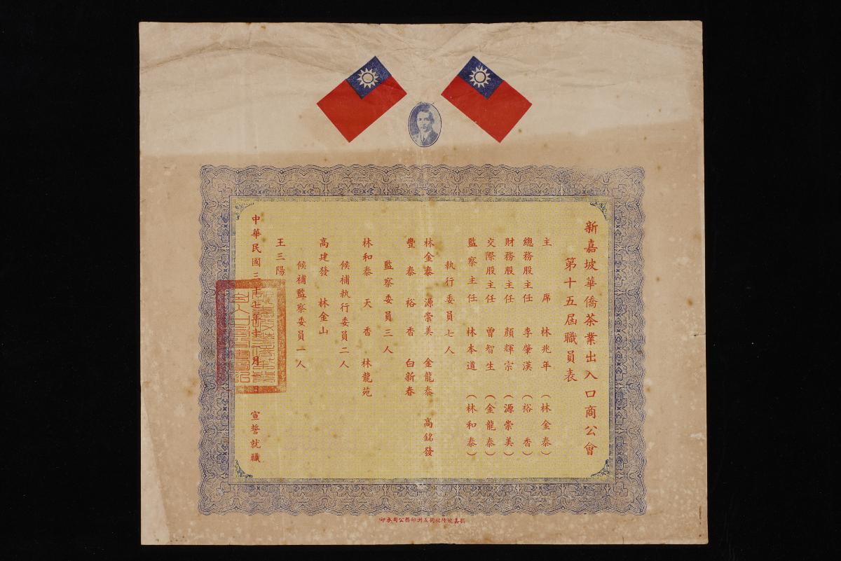 This is a membership booklet belonging to a member of the Singapore Pork Merchants Association (Xinjiapo tu shang gong hui 新加坡屠商公会). The organisation, formed in 1934, was the representative body for Chinese pork merchants in Singapore. The booklet contained the personal information of the member it belonged to, which would include the member’s name, age, sex, as well as the person who introduced him/her into the organisation. A seal found on the first page of the booklet indicated that the original owner of the booklet was a recipient of mutual aid funds from the association. This meant that the Association would provide financial assistance to the member in times of need.