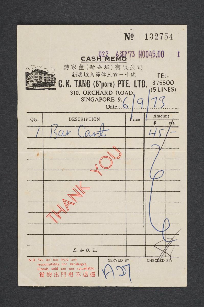 This is a plastic bag from the homegrown department store C.K Tang, one of the earliest retail presences on Orchard Road.