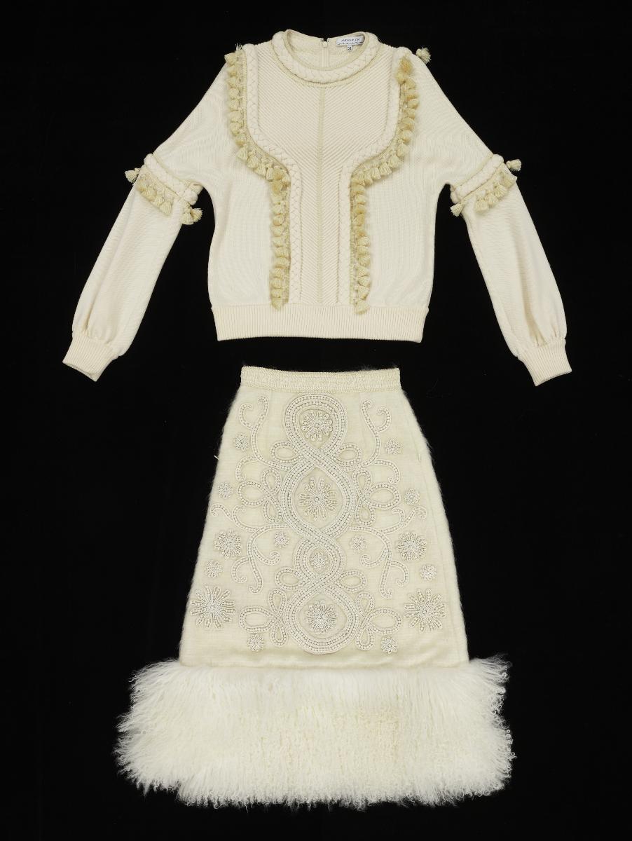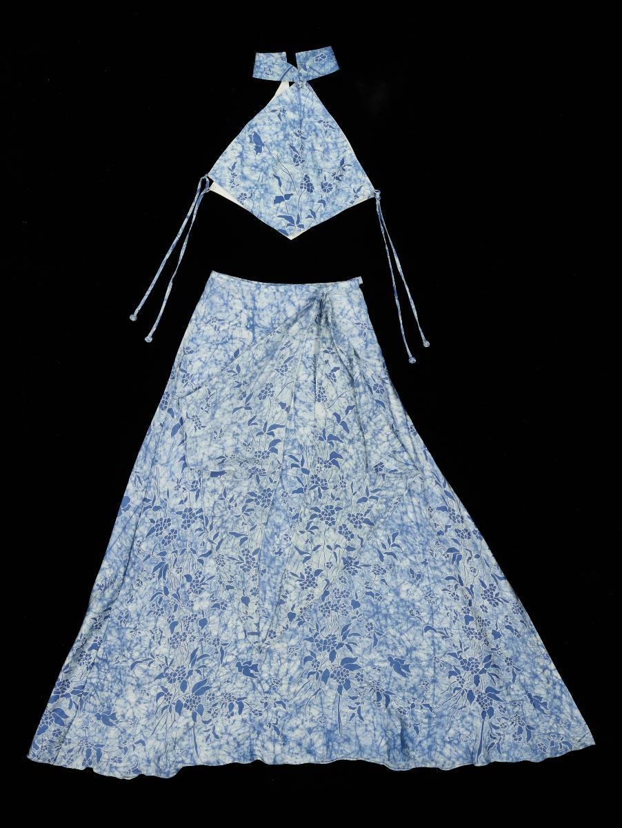 This Issey Miyake knitted ensemble belonged to Judith Chung, a fashion entrepreneur and journalist. The coat’s organic shape and ribbed textures in soft blue, pink and grey emulate a seashell’s surface, hence lending its name. It is paired with a matching off-shoulder top and pink skirt. It marks a period of Issey Miyake’s fascination with nature and biomimicry. Issey Miyake together with his team at Miyake Design Studio (est. 1970) combined novel technologies of synthetic textiles and innovative crafts to challenge conventions of clothing the body.Along with the rise of Japanese fashion globally in the 1980s, boutiques in Singapore catering to Japanese designers multiplied. Judith Chung was the owner of the popular boutique Man and His Woman (1972–1993), one of the most significant shops in Orchard Road that carried such Japanese brands. The multi-label store also brought in the most desirable global high fashion labels in the 1970s–80s. Her tastes and shop shaped an entire generation of fashionable people in Singapore and the region.