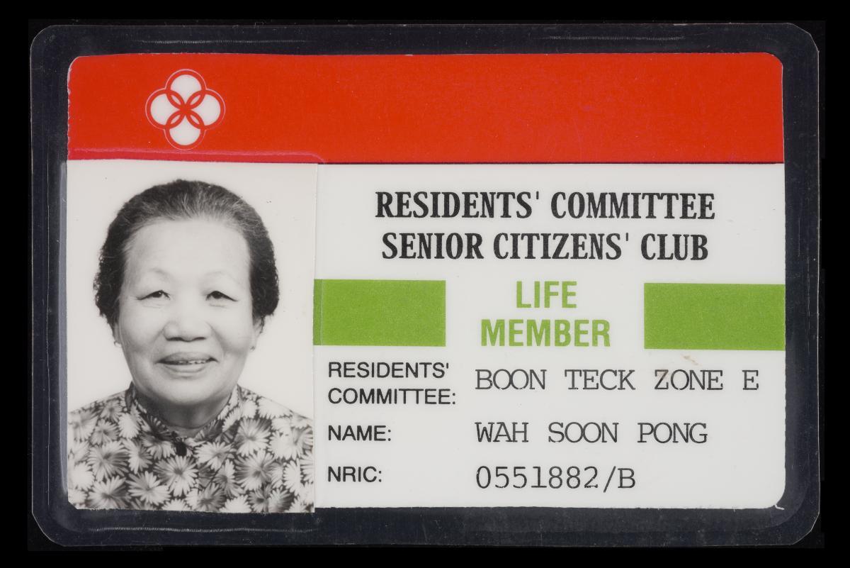 This is a membership card for Khe Bong Community Centre Senior Citizens’ Club issued by the People’s Association (PA). PA was a statutory board that aimed to foster social cohesion in Singapore. During the 1980s and 1990s, in response to Singapore’s ageing population, PA implemented several initiatives to encourage senior citizens to lead a healthy and active lifestyle. This included increasing the number of Senior Citizens’ Clubs in community centres.
