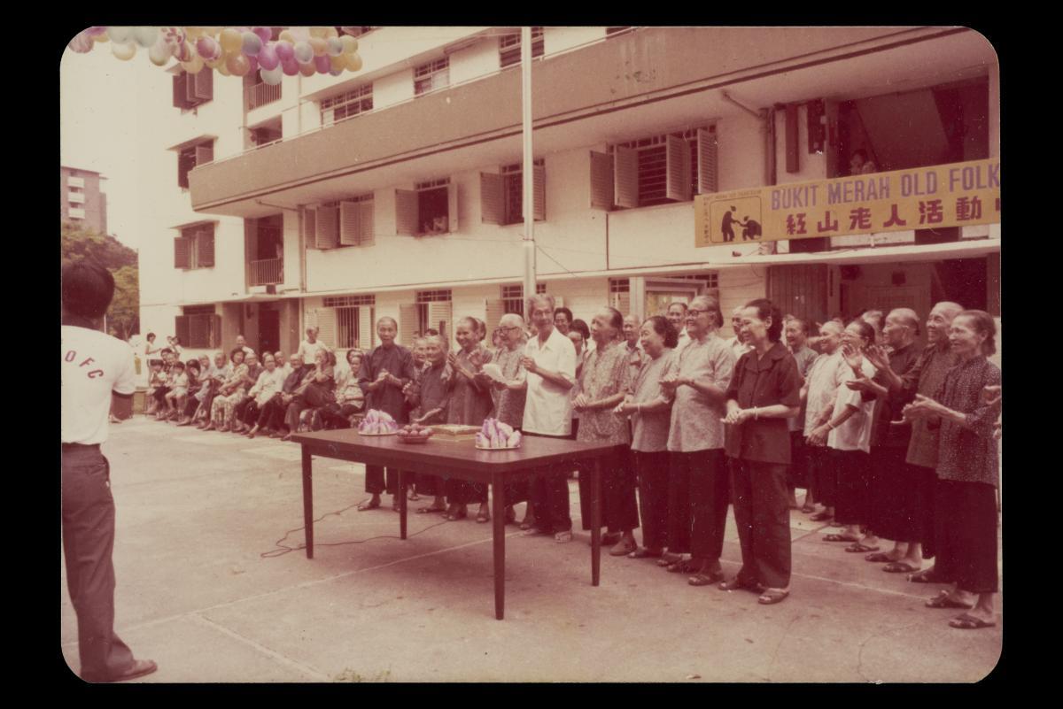 This is a photo of members of the Bukit Merah Old Folks' club making a sign for the club. Located at Blk 14 Redhill Close, the club was officially opened in 1979 thanks to the efforts of the Community Service Volunteers (volunteers under the Council of Social Service, which later became the National Council of Social Service in 1992). The club sought to address issues faced by the elderly such as loneliness and medical and financial problems.