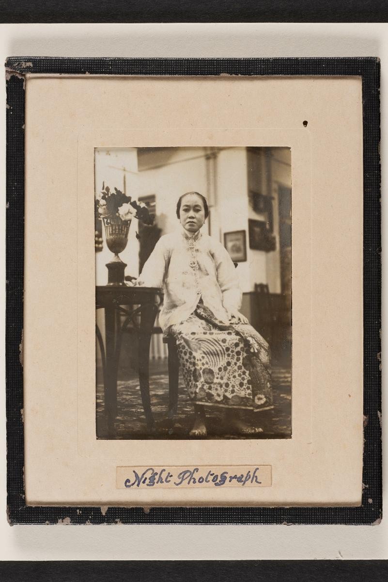 This is a photograph of Peranakan nyonya, Nancy Peh Cheng Neo (1919 – 1994) who married John Wee Chim Hock. The kerosang rantay seen in this photograph has been donated to the museum and was a family heirloom passed down from Nancy's mother, Mrs Peh Wah Kok née Seet Guan Neo. Up till the late 1970s, four generations of the family including Nancy’s children lived at “Rose Villa” in Geylang, Singapore.