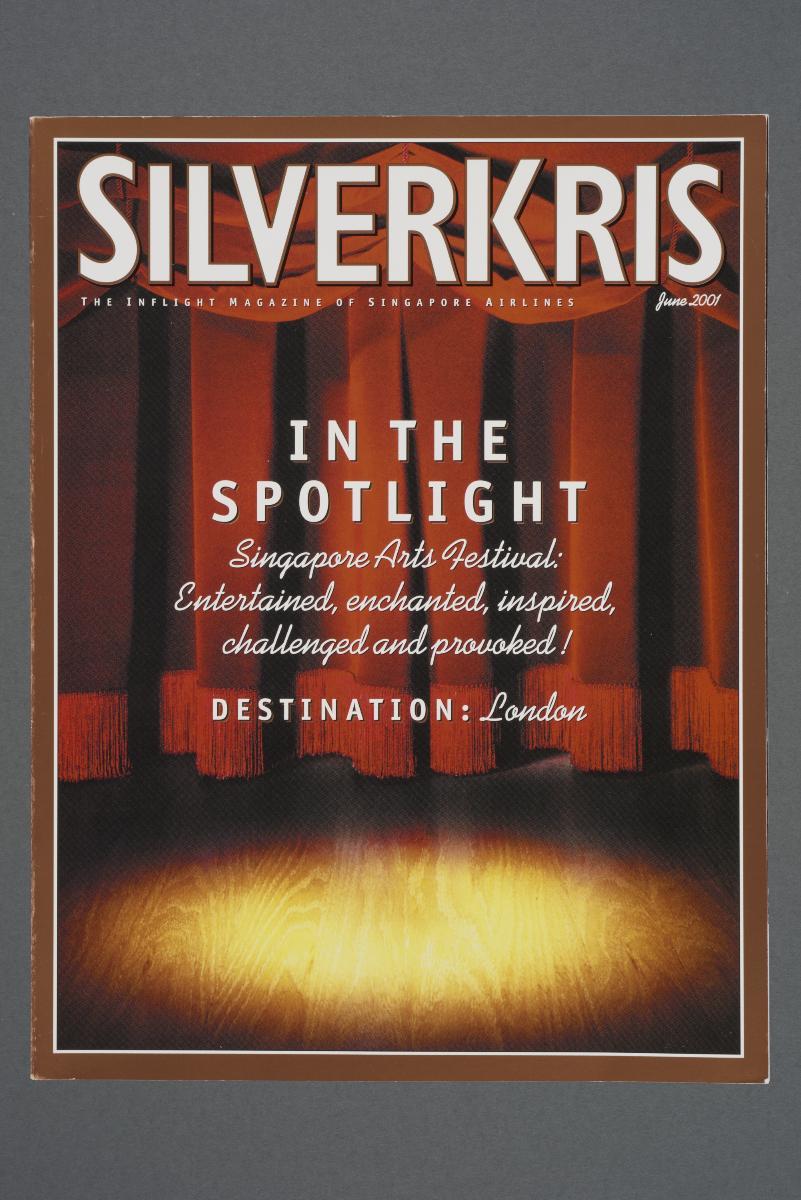 The inflight magazine of Singapore Airlines (SIA) was first launched in December 1975 as Silver Kris. Covering current and future trends in air travel, as well as travel features and destination guides, the magazine also provided information about SIA's products and services, fleet, network, and airports served. An online version of the magazine was launched in 2010 and the magazine, presently stylised as SilverKris, has been fully digital since March 2020. This issue is part of a set donated by Mr Jimmy Chew, who worked as an engineer at SIA from the 1960s until his retirement in 1998.The July 1991 issue of Silver Kris, pictured here, includes highlights of Singapore Changi Airport on the occasion of its tenth anniversary of operations and the new features of Terminal 2, which opened in November 1990.