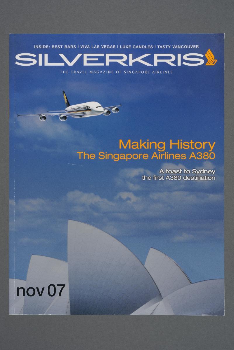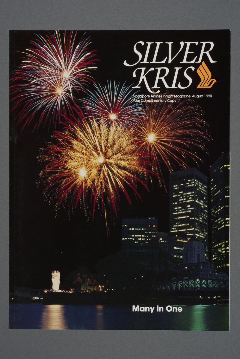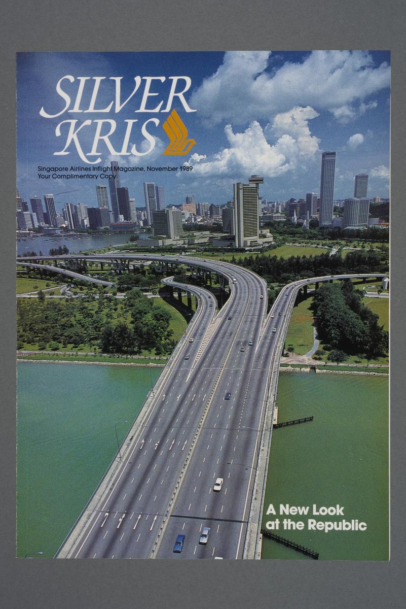 The inflight magazine of Singapore Airlines (SIA) was first launched in 1976 as Silver Kris. Covering current and future trends in air travel, as well as travel features and destination guides, the magazine also provided information about SIA's products and services, fleet, network, and airports served. An online version of the magazine was launched in 2010 and the magazine, presently stylised as SilverKris, has been fully digital since March 2020. This issue is part of a set donated by Mr Jimmy Chew, who worked as an SIA engineer from the 1960s until his retirement in 1998.The November 1990 issue of Silver Kris, pictured here, introduces the magazine's readership to the newly opened Terminal 2. The Changi Airport Skytrain, shown on the magazine's cover, began operations concurrently to connect the two airport terminals.