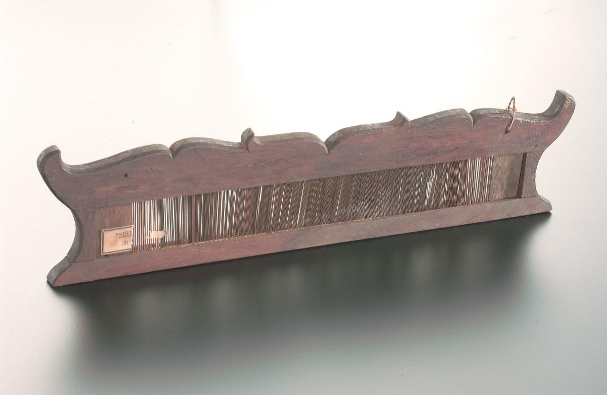 Weaving is a significant tradition amongst the Dayak communities; a craft practised and mastered predominantly by the women even till today. Textiles such as the intricately patterned pua kumbu of the Iban peoples are accomplished by first tying and dying the threads before weaving them with the use of a backstrap loom. In the weaving process, the weft thread would be shuttled through the warp threads from either the left or right using a jengkuan such as this one. These loom shuttles would have a partially hollowed out core for the yarn, and an opened edge for it to be released. The tools that are used for weaving, such as jengkuan, may sometimes be finely carved. This particular piece has been decorated with coiling foliate motifs characteristic of the woodcarving traditions of many of the Dayak communities, especially the Iban. While weaving was largely the domain of women, woodcarving is largely that of the men of the communities.