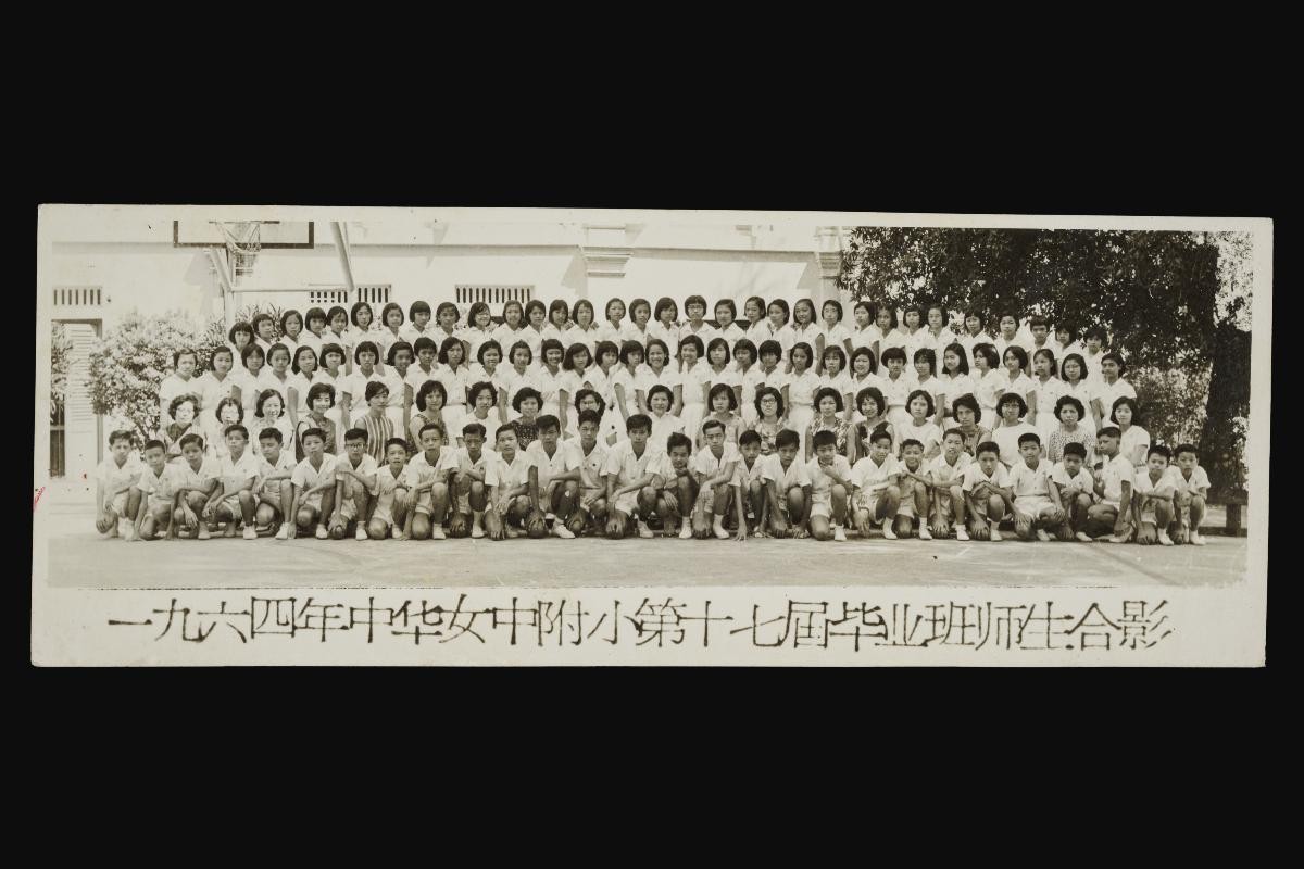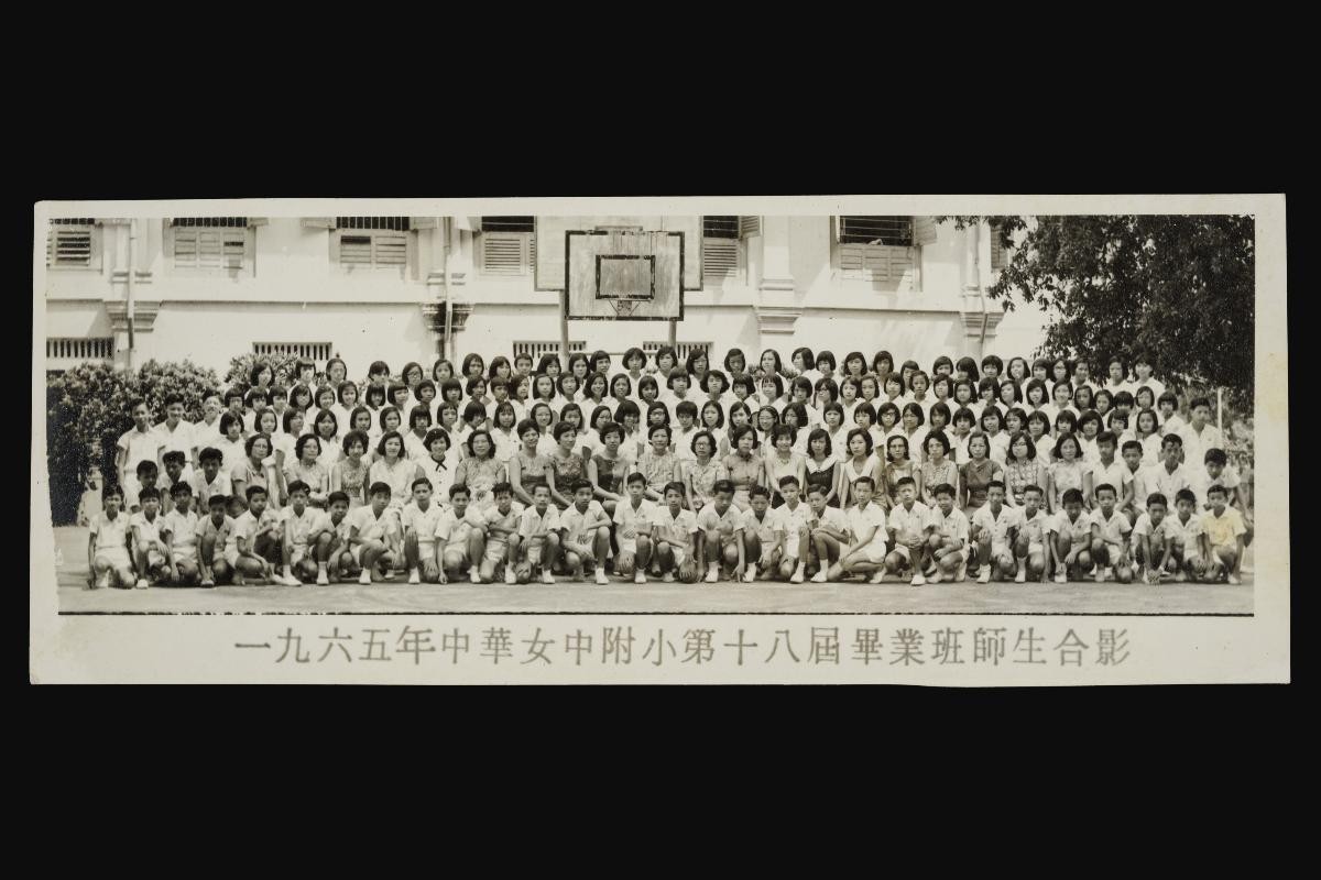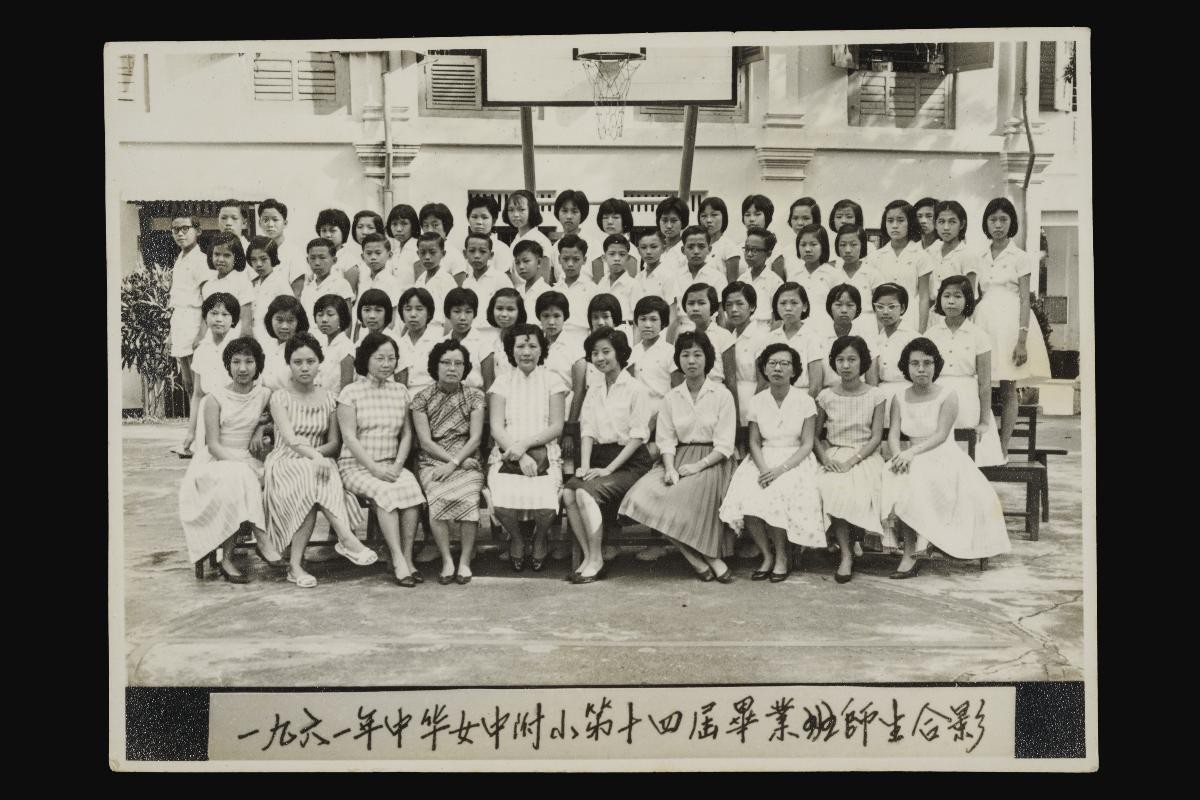 Lim Chor Koon (林初君) is pictured in this photo with her students from Chung Hwa Girls' High School Primary Section (中华女子中学 (附小)). Chung Hwa Girls' High School was established in 1911 by Tay Peng Teng, Puan Yeow Pong and the Chinese community in response to Sun Yat Sen's call for schools for girls. Lim studied in the school in the 1950s and went on to teach at Chung Hwa Girls' High School in the 1960s and 1970s.