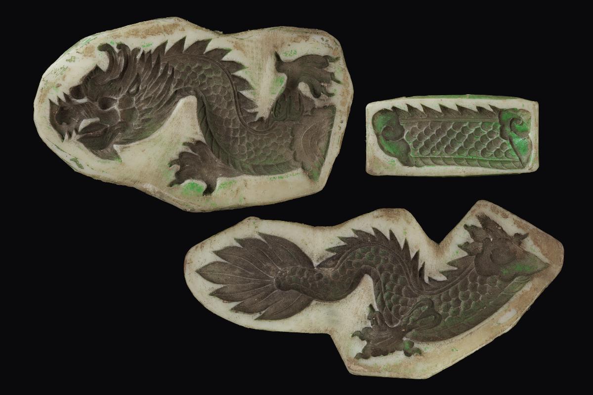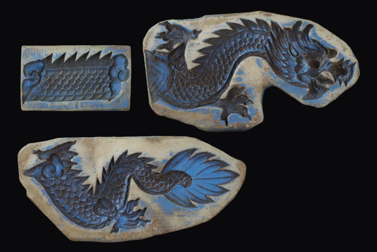 The dragon joss stick (longxiang 龙香) is the most popular type of large joss sticks produced by Tay Guan Heng, the only manufacturer of large hand-crafted joss sticks in Singapore when it ceased operations in December 2022. This set of moulds was one of the most frequently used by the manufacturer for the decoration of their 6-feet tall dragon joss sticks. The current set is handmade using a silicone gun by Albert Tay as the older moulds made of joss dough had started to break with over usage. The moulds belonging to one set are coloured coded for easy identification. The blue and green coloured moulds were used for making the front-facing dragon that was applied onto the core of the joss stick.