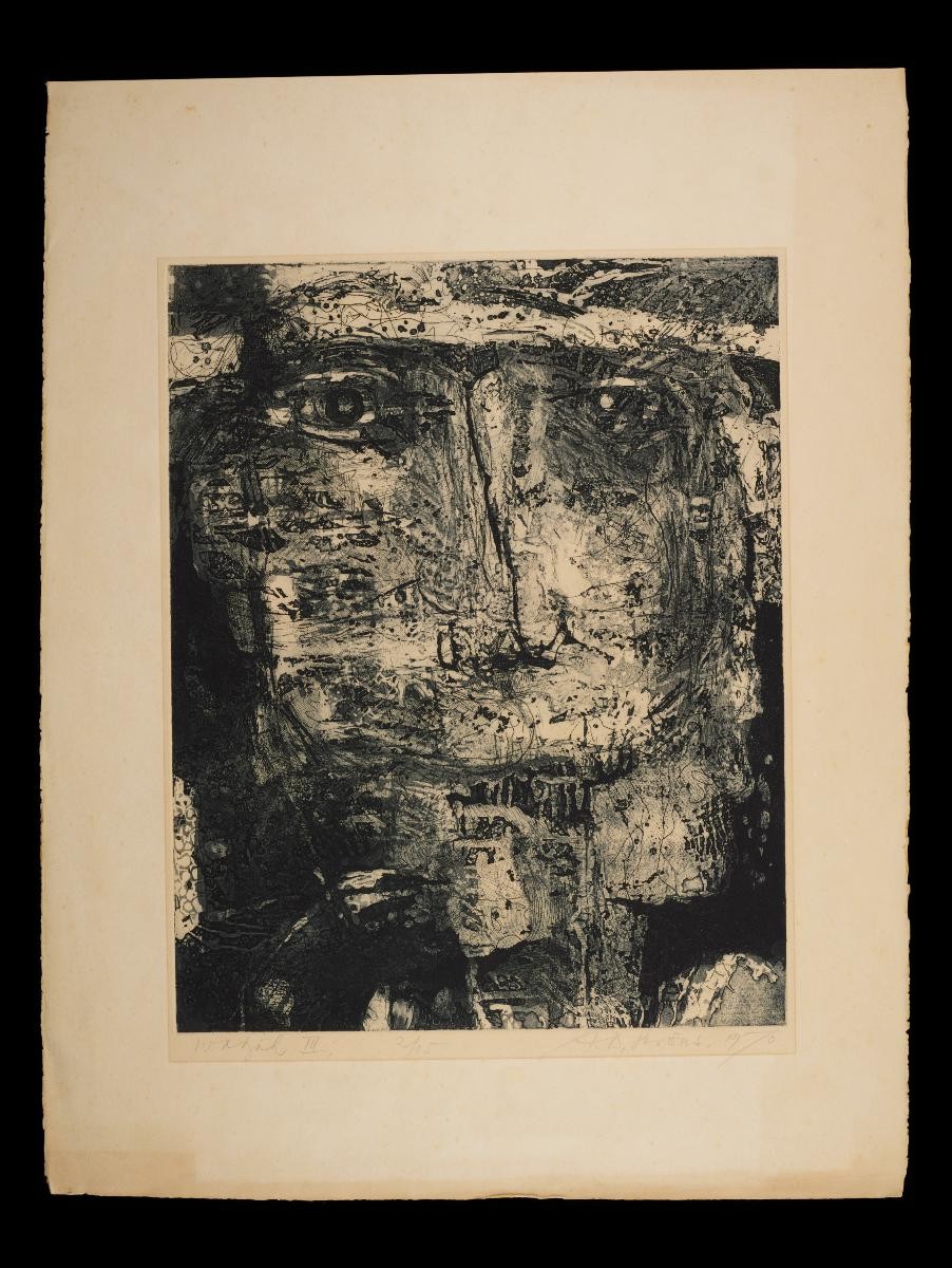 The grimacing figure in Dolorosa—which means “painful” in Spanish—is surrounded by several symbols: a target; two circles representing “hot” and “cold”; and cigarette burns, applied by the artist to reflect the callousness and violence of the time. The work refers to victims of the Vietnam War, but can also be read more generally to represent those caught between opposing ideologies during the Cold War.