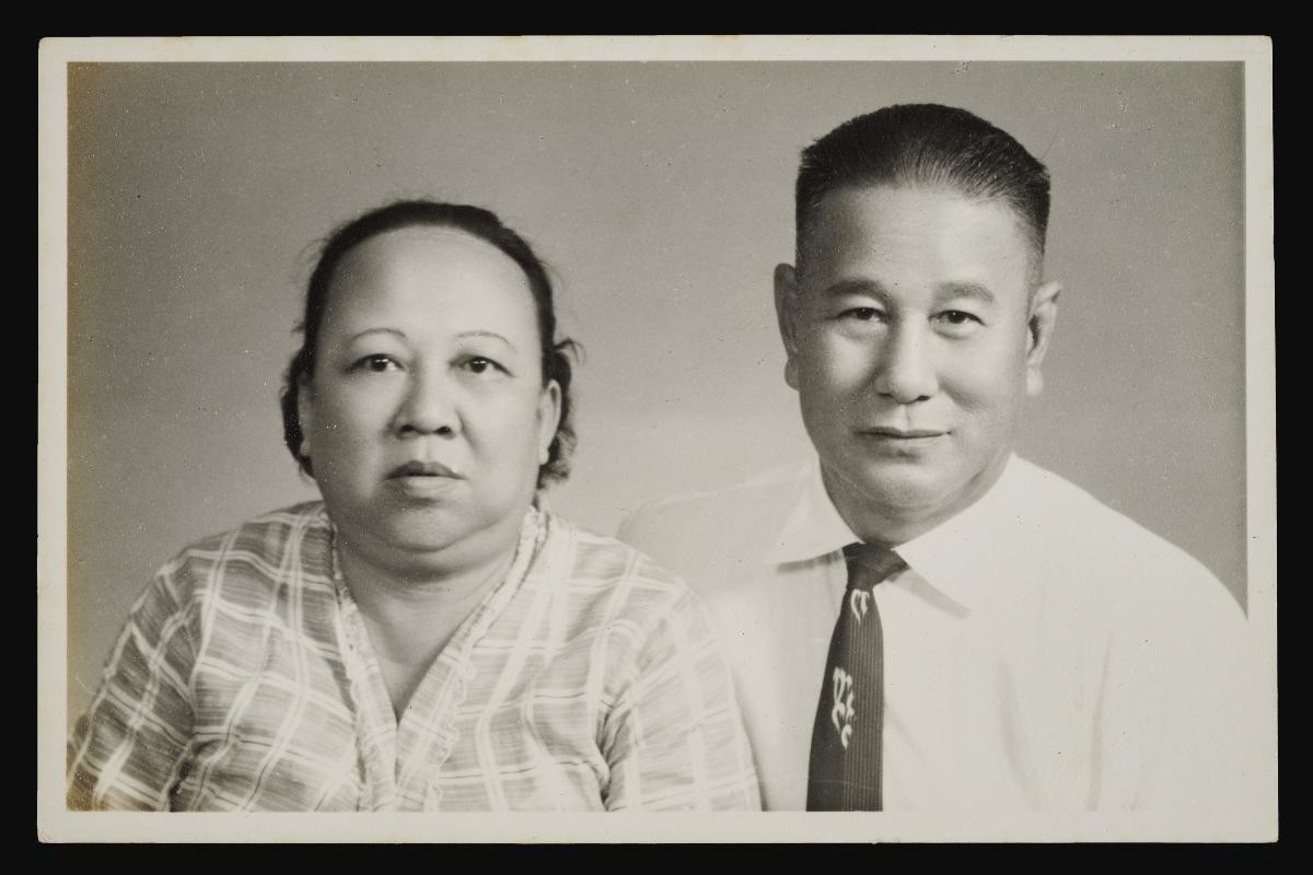 This photograph depicts the family of Lim Chan Ngam (林赞岩) at the Seu Teck Sean Tong temple in Toa Payoh Lorong 6. Lim (1904-1967), was a pre-WWII immigrant who came to Singapore from China and became a successful trader dealing in rubber in the Riau islands. He made a substantial fortune until unfortunate circumstances led to the collapse of his business. In this photo, he stands at the top left of the group. Established in 1942, Toa Payoh Seu Teck Sean Tong was first situated in Kampong Hup Choon Hng. The kampong, which was cleared during the redevelopment of Toa Payoh town, was located between the Lorong 8 market and where the current temple stands today. The temple building at its present site was completed in 1959, and enshrines the Taoist deity Song Da Feng as its patron saint, as well as other deities. The worship rituals and cultural traditions of Buddhism, Taoism and Confucianism are practised here.