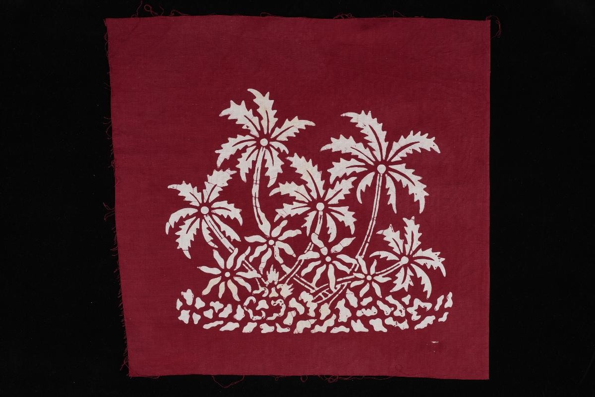 Established in 1974 by Mr Tan Koon Yong (1933–1986), I. B. Batek Industrial was one of the largest and last batik making enterprises in Singapore – and a reminder of the manufacturing that once dominated Singapore’s early economic development. They specialised in stamped batik designs. I. B. Batek batiks made for furnishing and garments, were wholesaled to retailers or factories to be finished into cushion covers, tablecloths, napkins, as well as ready-to-wear clothes. I. B. Batek Industrial was largely a family business with the core employees often being relatives, friends, and family members. Upon Mr Tan’s passing, his wife Ms Ong Kue Neo (born 1941) became managing partner and supervised operations. Two craftsmen were recruited to make the stamps such as this example. Susatio, from Yogyakarta, worked for I. B. Batek for 10 years, producing copper stamps of mainly Javanese motifs. Hamid Rahman, from Kelantan, worked between 1973 and 1987, creating most of the stamps with Singapore motifs, including hibiscus, orchids, and the Merlion.