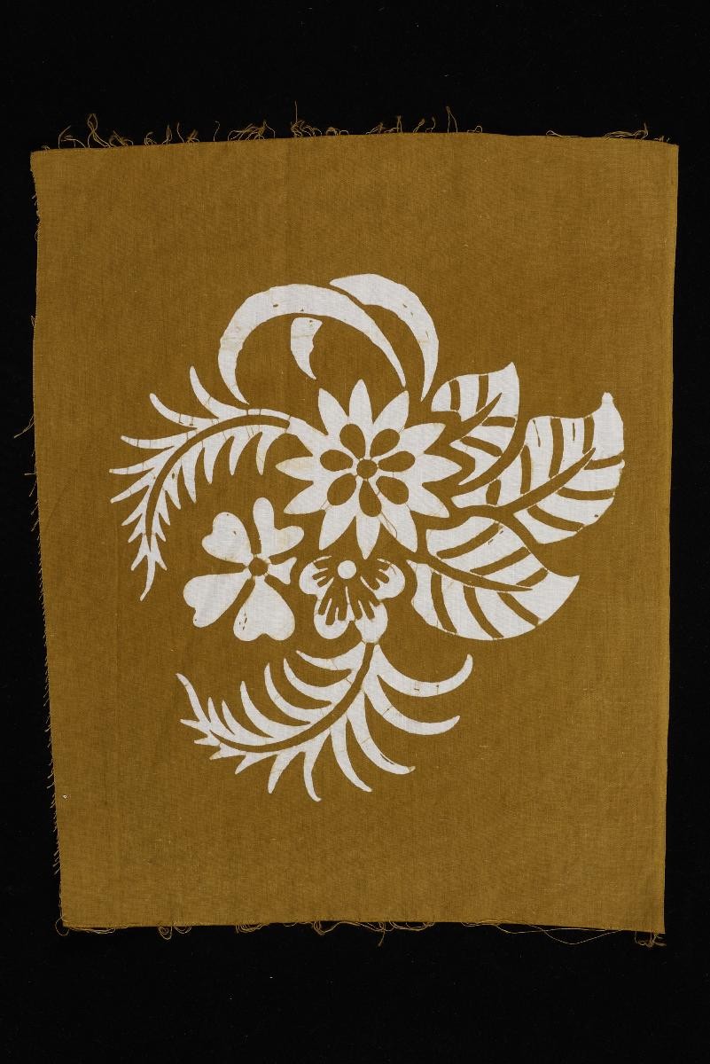 Established in 1974 by Mr Tan Koon Yong (1933–1986), I. B. Batek Industrial was one of the largest and last batik making enterprises in Singapore – and a reminder of the manufacturing that once dominated Singapore’s early economic development. They specialised in stamped batik designs. I. B. Batek batiks made for furnishing and garments, were wholesaled to retailers or factories to be finished into cushion covers, tablecloths, napkins, as well as ready-to-wear clothes. I. B. Batek Industrial was largely a family business with the core employees often being relatives, friends, and family members. Upon Mr Tan’s passing, his wife Ms Ong Kue Neo (born 1941) became managing partner and supervised operations. Two craftsmen were recruited to make the stamps such as this example. Susatio, from Yogyakarta, worked for I. B. Batek for 10 years, producing copper stamps of mainly Javanese motifs. Hamid Rahman, from Kelantan, worked between 1973 and 1987, creating most of the stamps with Singapore motifs, including hibiscus, orchids, and the Merlion.
