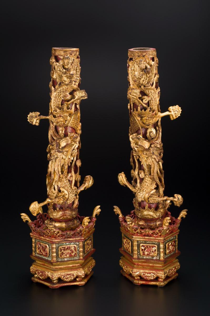 This pair of candlesticks was used on the altar dedicated to Da Bo Gong/Tua Pek Gong (大伯公), who is revered as a tutelary deity and god of prosperity. The altar was set up during Zhongyuan Jie (中元节, also popularly known as the Hungry Ghost Festival) by the Hougang Sixth Mile Stone 7th Month Committee (后港六条石大公司中元会). The committee was purportedly established in the early 1940s and continued to organise mass prayers and present offerings to the spirits of the deceased annually until 2022 (when the committee disbanded due to the old age of many members). The committee was originally formed by business owners and residents who worked and lived near the Simon Road market located at “Hougang sixth milestone”. The market was built in 1948 and ceased operations in 1999. “Hougang sixth milestone” was used by residents to refer to the area around the junction of Flower Road and Upper Serangoon Road.
