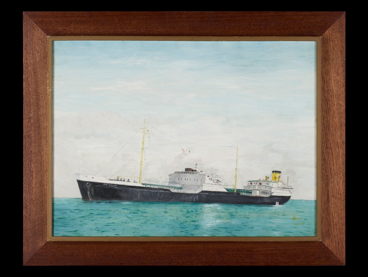 These documents are a record of sea service by a Fifth Engineer on board the SS San Felipe, a tanker belonging to Shell. The documents record time spent at sea and the ability, conduct, and sobriety of the seaman. Sea service was a requirement for obtaining a certificate of competency for marine engineers.