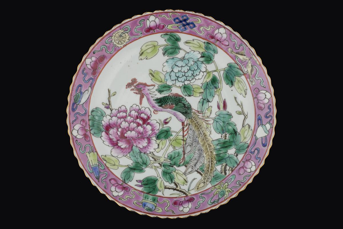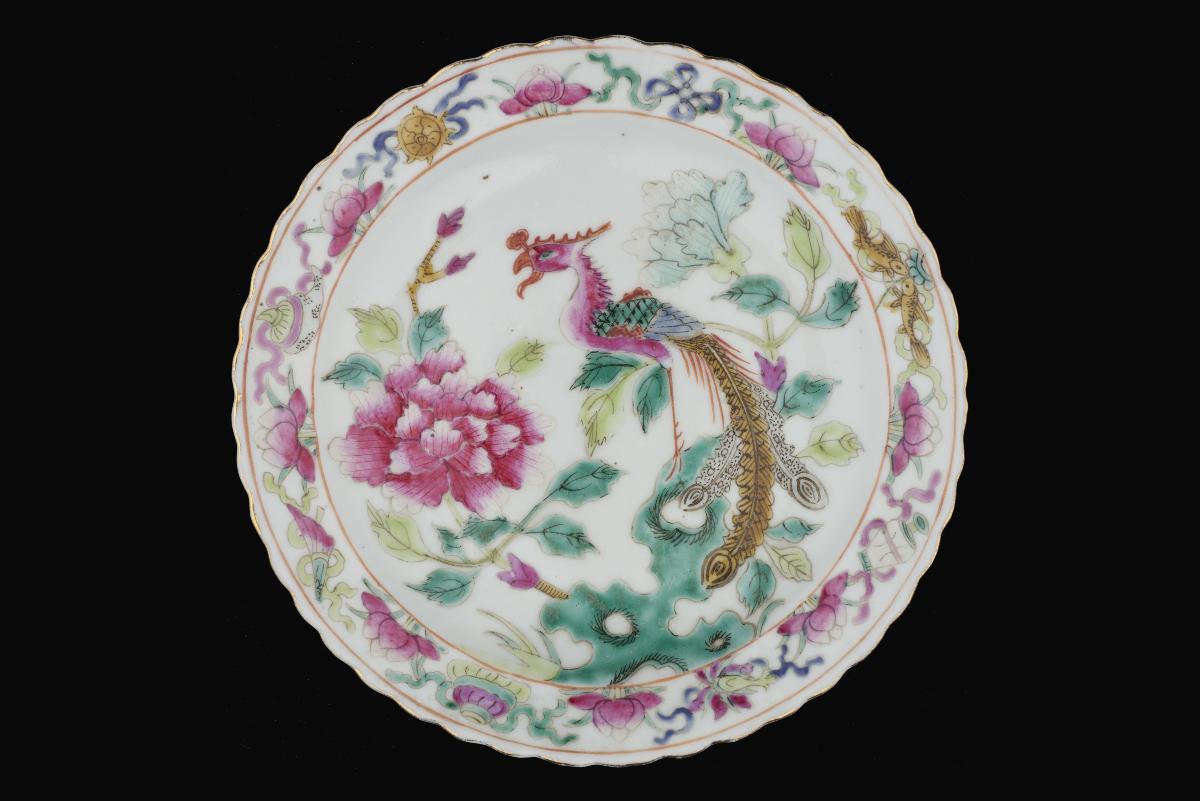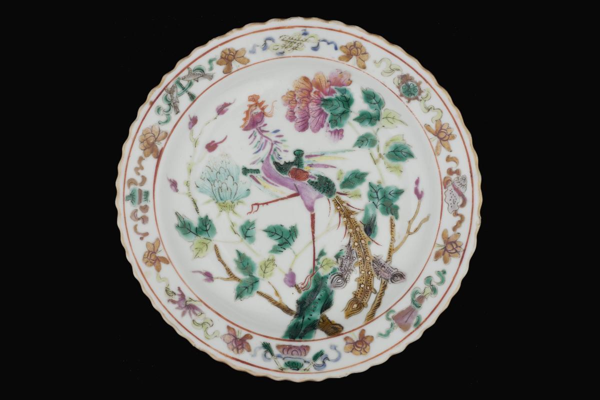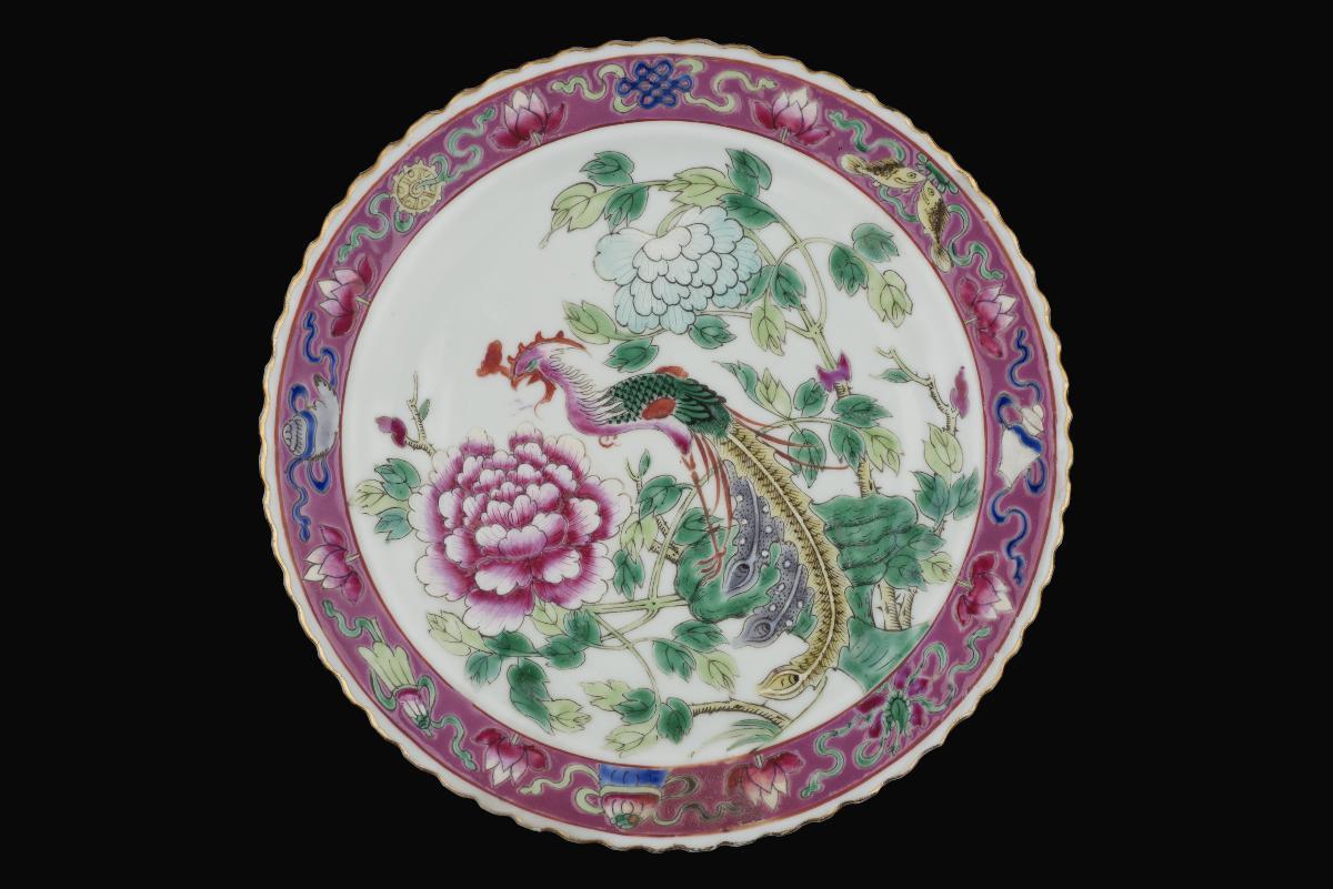 This blue-and-white porcelain plate with dragon and phoenix motifs might have been commissioned by the family of Cheang Hong Lim, as evident from the mark of 生 苑 (Wan Seng) on the reverse. Wan Seng was Cheang’s other name and the name of his company. Cheang Hong Lim (1825-1893) was highly regarded in the Singapore Hokkien Chinese/Peranakan community as a merchant and philanthropist. He was appointed a Justice of the Peace in 1876 and contributed to the funding of temples and charitable causes. Two places in Singapore are named after him including Cheang Wan Seng Place and Hong Lim Park. This type of porcelain is among the finest of blue-and-white pieces used by Peranakans.
