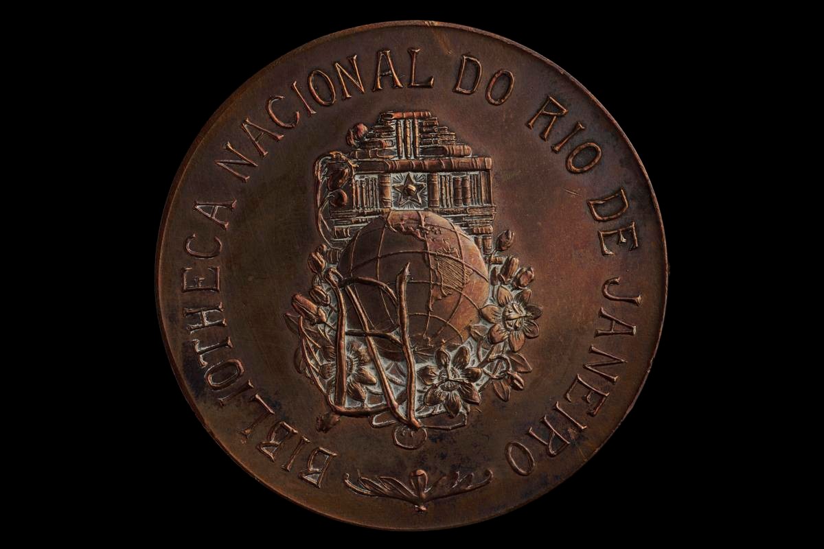 This medal was issued to commemorate the opening of the new building for the Bibliotheca Nacional in Rio de Janeiro in 1910, and likely presented to the Raffles Library and Museum by the Colonial Secretary's Office. The library as an institution had been in existence since 1810, following a decision made by the Portuguese royal court to move their collections to safety in Brazil following the great earthquake in Lisbon in 1755. The library was transferred to independent Empire of Brazil in 1822, and then again to republican Brazil in 1899. Over these decades, the library's collections expanded as a result of purchases and donations, and discussions to transfer the Bibliotheca Nacional to a more suitable building were underway as early as1858. The Bibliotheca Nacional building was finally unveiled to public in 1910, and continues to serve its function to the present day.