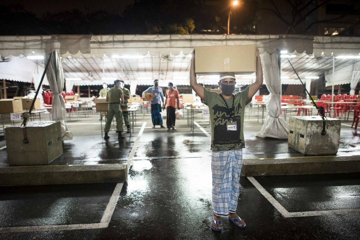 This series of 33 photographs by Edwin Koo documents the various housing arrangements for migrant workers in Singapore during the global COVID-19 pandemic in 2020. This covers in particular the outcome of a series a measures implemented to address the outbreak of the virus across workers' dormitories, namely through the temporary housing of workers to locations such as Singapore Expo and camps formerly used by the Singapore Armed Forces.