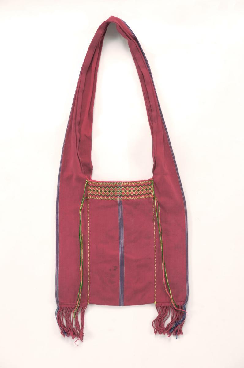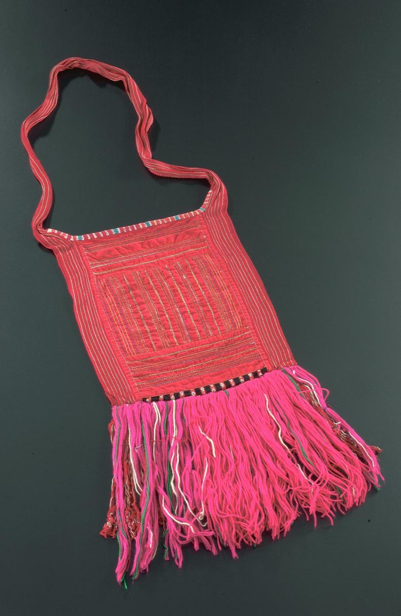 This cloth bag was embroidered by the donor during her sewing lessons at Haig Girls’ School, where the students were expected to complete one sewing project each year. This bag was her Primary 2 project. Besides the jacket, the donor’s primary school sewing projects included an embroidered stool, bolero jacket, cushion covers and a tablecloth.