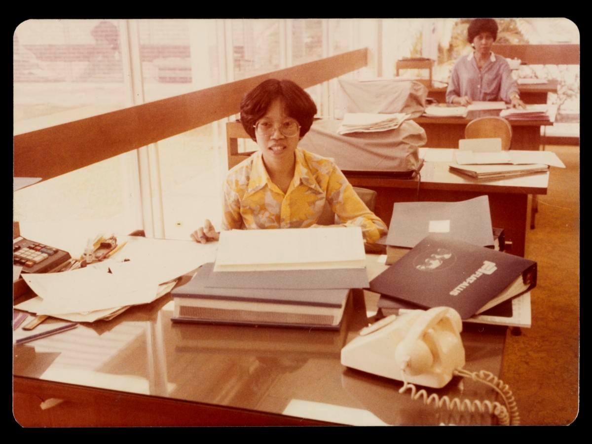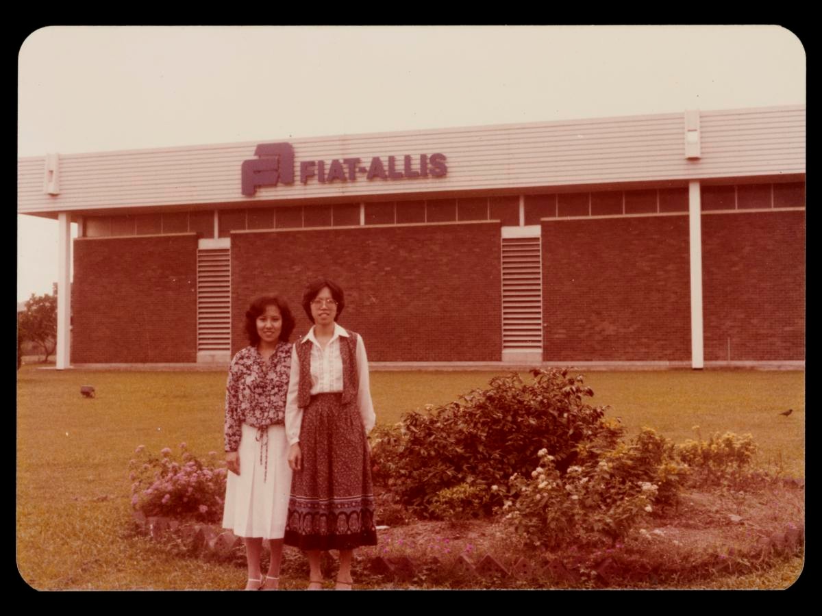 This is a Fiat-Allis Christmas greeting card with a staff photograph in the 1970s. From 1974 to 1979, Loo Karn Moon (back row, sixth from left) worked at Fiat-Allis, a heavy equipment company. She was a posting clerk handling invoices and sales support. Fiat-Allis was a foreign company that operated in Singapore during industrialisation. Its heavy equipment was likely used in construction for Singapore's housing and infrastructure projects at the time.