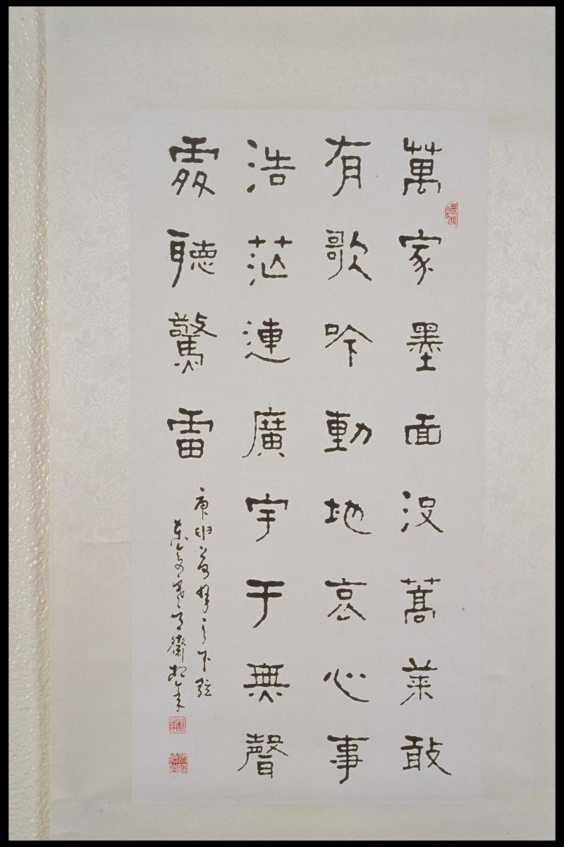 Artist: Tan Kian Por Born in China in 1949Studied at NAFA between 1968-1970. Graduated in Western oil painting.Studied Chinese ink painting under Shi Xiangtuo and Chen Chong Swee. Influenced by Shanghai school artists Wu Changshuo and Ren Bonian. Held 11 solo exhibitions since 1972.Founder member and president of Siaw Tao Chinese seal carving, Calligraphy and Painting Society. Founded in 1970. Awarded Cultural Medallion in 2001. In 1994, he was the first Singaporean appointed overseas honorary member of Xiling Seal Carving and Painting Society in Hangzhou, China. Excels in three fields of painting, calligraphy and seal engraving. Noted for his imaginative and striking compositions, confident brushwork and ink play. Continues to persevere in the tradition of blending all three artforms in his works.